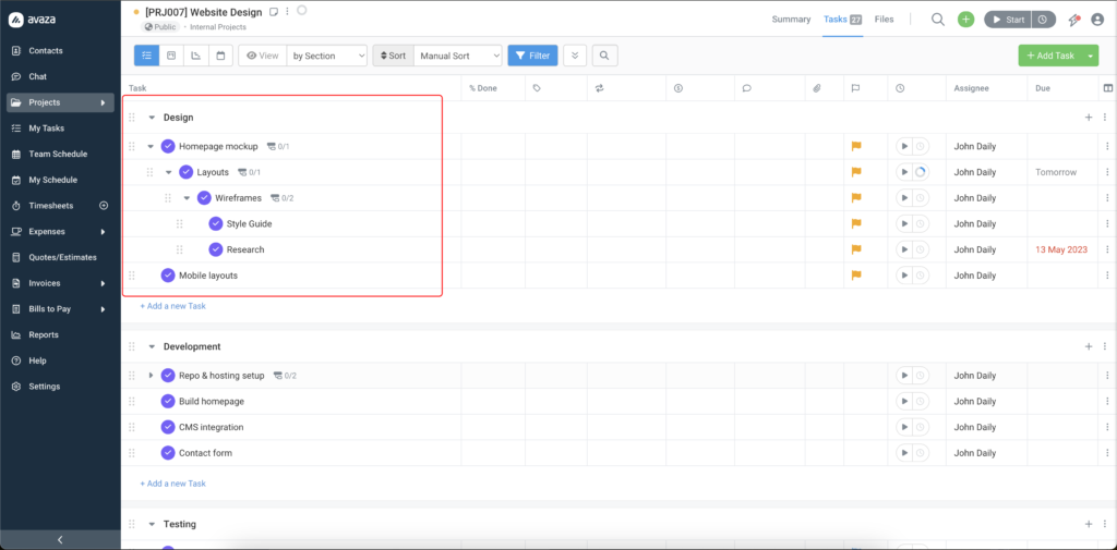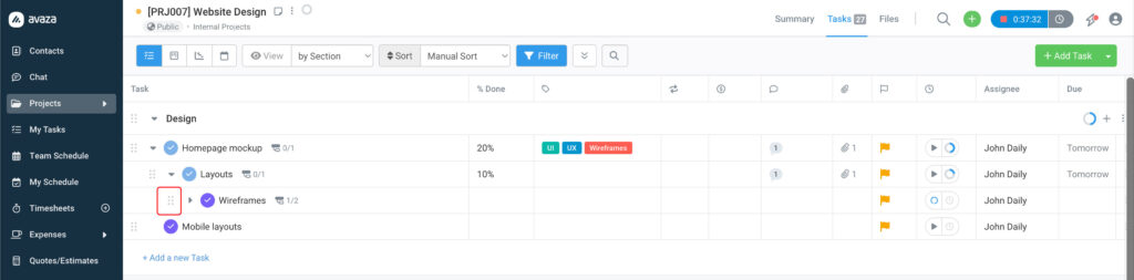 Restructuring your task hierarchy in Avaza is now as simple as dragging and dropping.