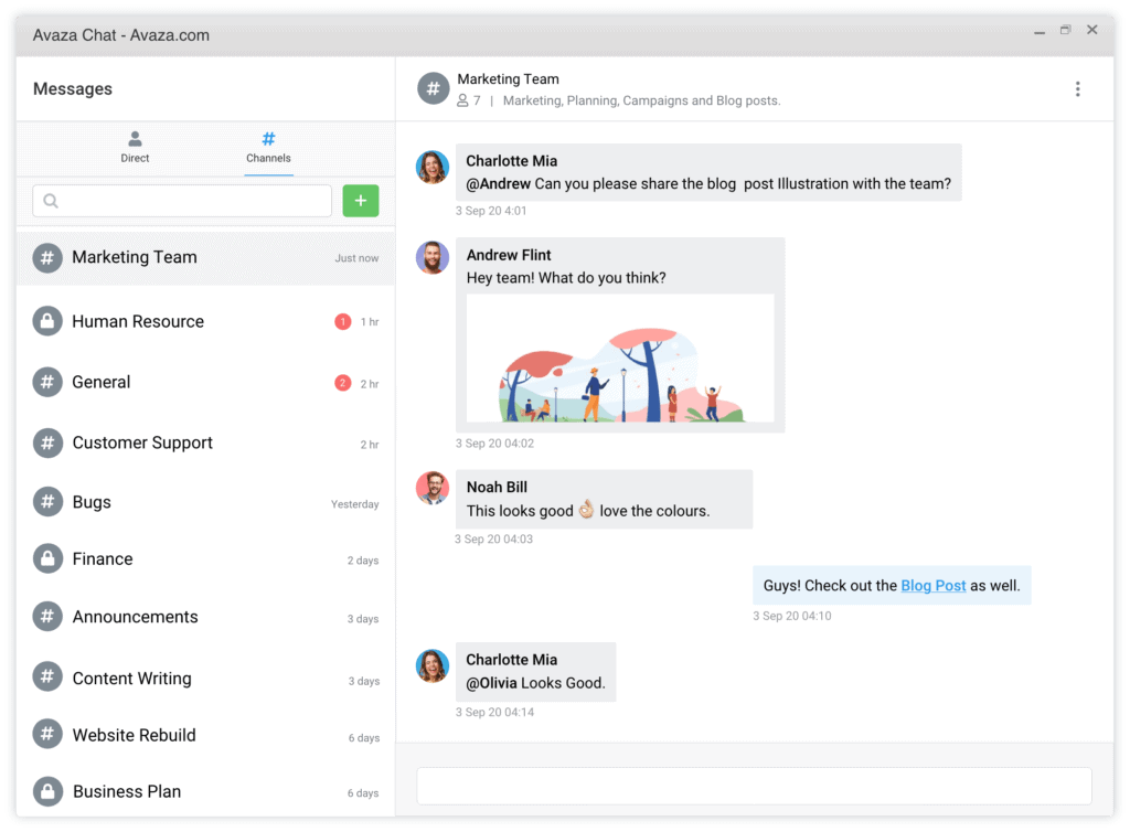 Avaza Chat is a business messaging and collaboration app that empowers your team and external contacts to communicate freely. Bring your conversations, files and people together with Avaza Chat.