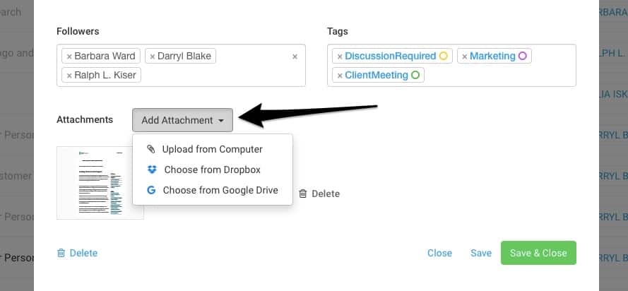 - Click Add Attachment on Task, Task Comments, Quotes or Invoices.